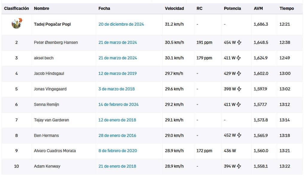Mientras que Vingegaard y Remco aseguran estar en muy buena forma, a días de empezar el 2025, Pogacar rompe un nuevo récord.