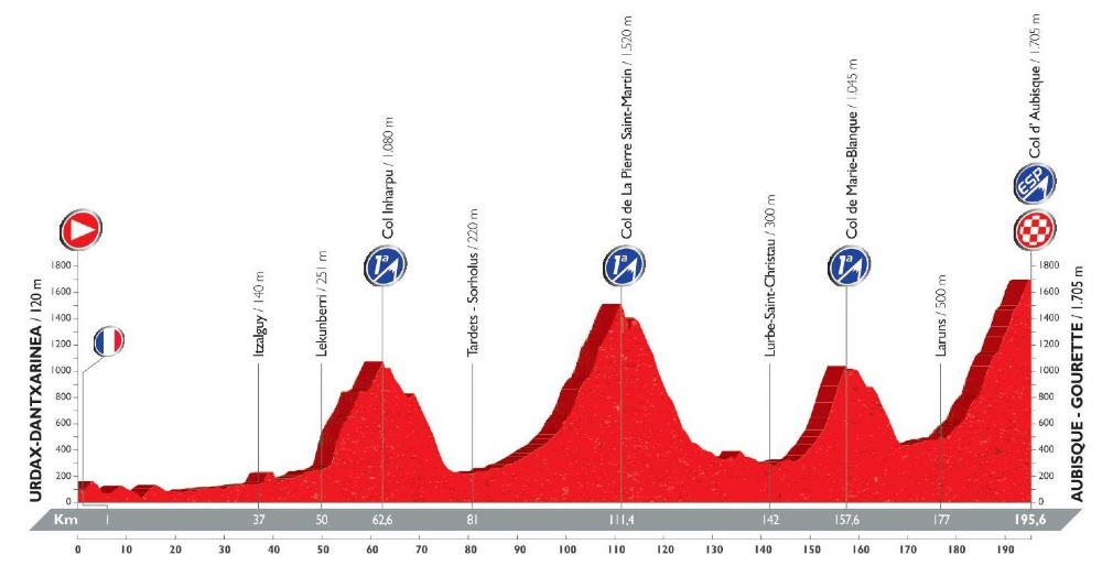 Luego de algunas etapas en País Vasco plagadas de puertos de 2° y 3° con final en bajada -ideales para las fugas o clasicómanos- la Vuelta llegará a su jornada “reina”. Será en los Pirineos galos, con el Aubisque como cierre tras haber superado tres puertos de 1°: Col Inharpu, Col de la Pierre Saint-Martin y Marie Blanque. Allí se sabrá quienes no serán campeones.