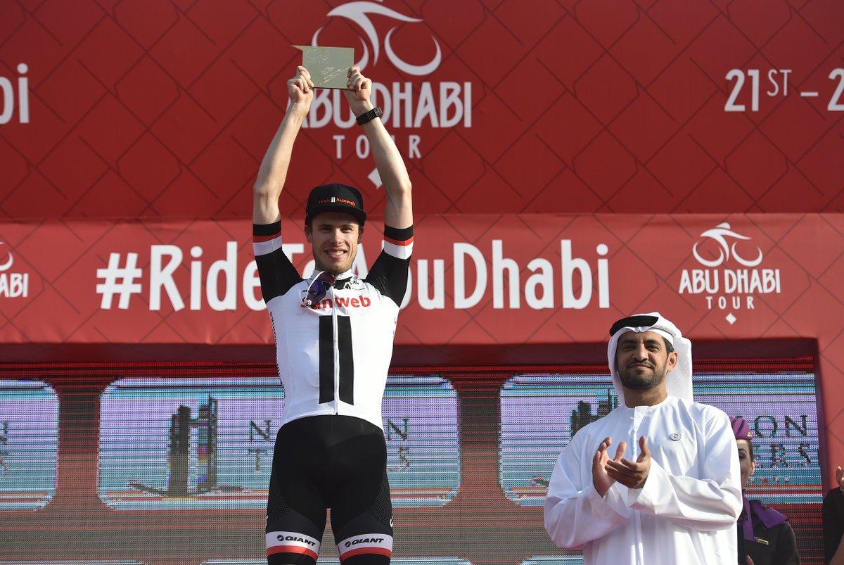 #LastKm of the #AbuDhabiTour stage 3. Close finish between @PhilBauhaus of @TeamSunweb & @MarcelKittel, who doesn’t find the way to win in this 2018. pic.twitter.com/95RZNeR7uu