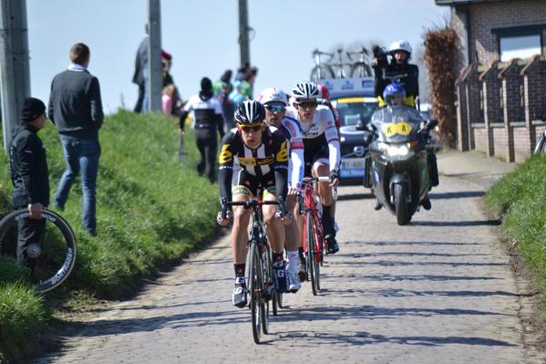 Aprovechando los tramos de pavés, en cada paso por ellos se vivió una verdadera batalla durante los primeros kilómetros del día, con constantes ataques que hacían sufrir a más de uno a cola de pelotón.