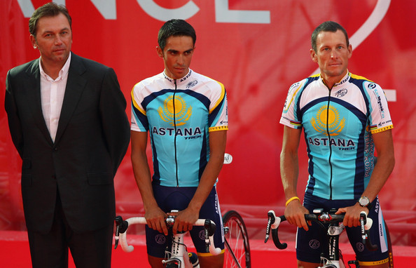 Respecto al texano, Bruyneel indicó: “Cuando Lance anunció su regreso, me reuní con él y sabía que en su cabeza quería ganar el Tour de France, yo le expliqué que Contador era el líder del equipo, y que le podía garantizar que él no era más fuerte que Alberto. Él me dijo: Ya veremos”