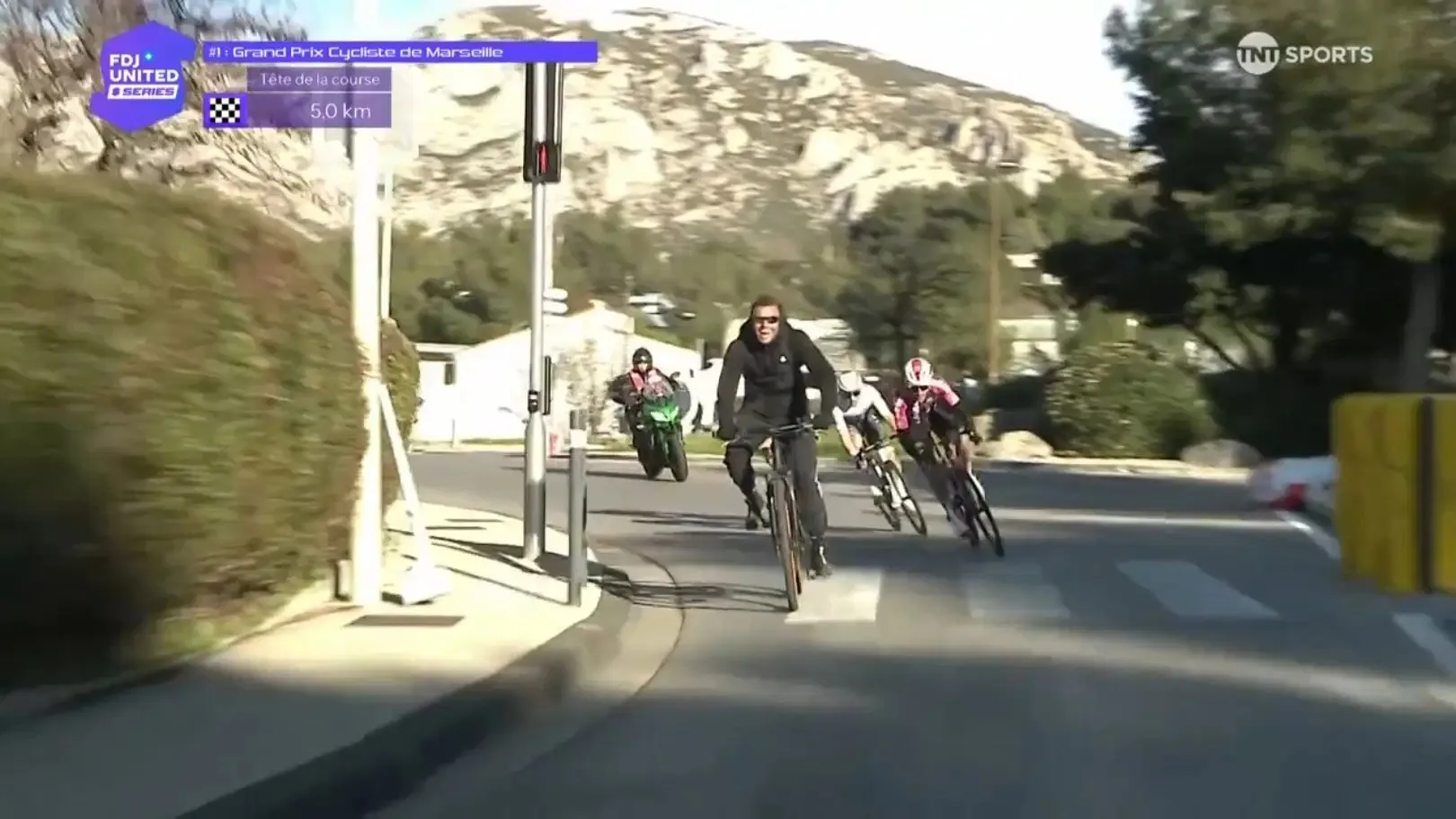 Una vez más se produjo un hecho que dejó en duda la fiabilidad de las medidas de seguridad en el ciclismo. En este caso hubo caos por la irrupción de una moto en el GP Marseille, competencia de apertura del calendario francés. Allí ganó Bryan Coquard pero la noticia fue que un hombre en un scooter rodó en el trazado de la competencia con los ciclistas pasando a su alrededor en una imagen casi surrealista.