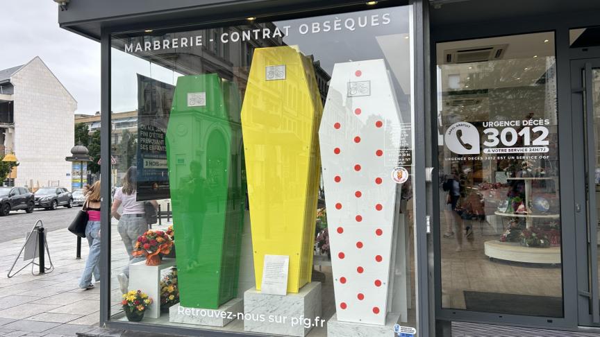 El fanatismo del Tour incluso llega al final de la vida. Venden ¡ataúdes! con los colores de los líderes del Tour