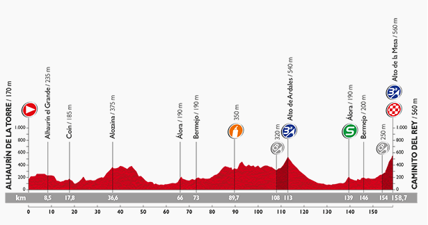 Por David Hunter Mijas – Malaga 158.4km Apenas estamos en la etapa 3 de la carrera y ya hay un puerto de 1°. La jornada parte de Mijas con dirección a Malaga dando un giro alrededor de Torre del Mar para luego dirigirse por la A7, bordeando la costa.