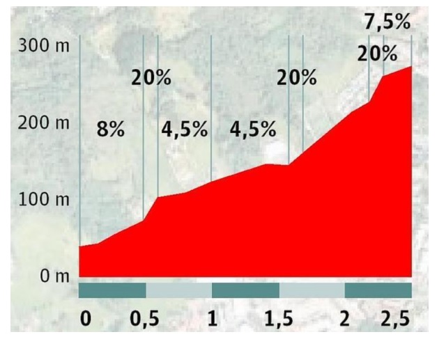 The final climb is brutal. It is one of those horrible climbs that constantly changes gradient, making it almost impossible for riders to settle into a rhythm. With gradients hitting 20%, it allows the best climbers to rise to the top. Once crested, it doesn’t get any easier. There is a small section of false flat, before the riders descend to the finishing line. This is where the race was won in 2016, with an attack by Bauke Mollema.
