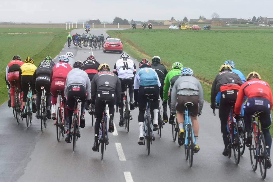 Así, tras diversos cambios, Degenkolb (Trek), Zakarin, Kristoff y Bystrom (Katusha), Alaphilippe y Kittel (Quick Step), Docker (Orica-Scott), Gallopin (Lotto-Soudal), Roosen y Wynants (Lotto-Jumbo), Henao y Rowe (Sky), Demare, Cimolai, Konovalovas y Sarreau (FDJ), Laporte, Senechal y Soupe (Cofidis), Swift (UAE), Bennett (Bora) y Siskevicius (Delko-Marseille) conformaron la cabeza de carrera y lideraron las acciones frente al viento y la lluvia que azotaba a la caravana.