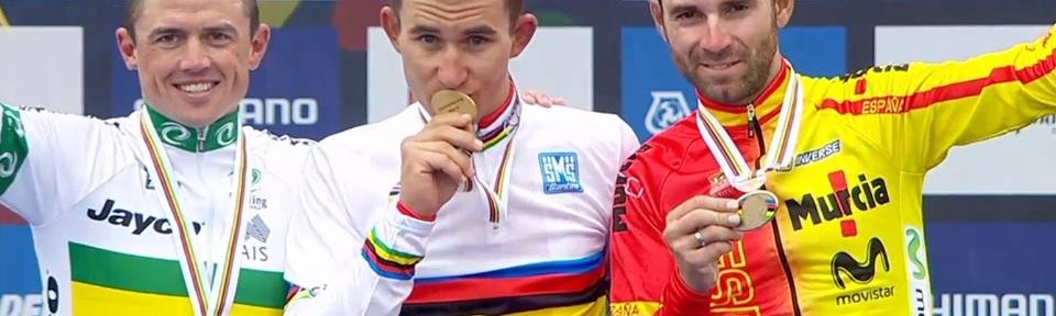 *Valverde, el especialista sin corona: una vez más quedó en la puerta del título Alejandro Valverde, un corredor único que tras disputar Tour y Vuelta y habiendo ganado clásicas por doquier se las arregló para subir al podio mundialista por 6° ocasión en su trayectoria. Esta marca, récord absoluto en el deporte pedal, apenas si hace justicia al murciano, porque parece sencillo para él obtener medallas arcobalenas cuando otros pasan una vida sin siquiera rozarlas. El de Movistar tomó la partida en 10 mundiales, fue 2° en dos (2003 y 2005), 3° en cuatro (2006, 2012, 2013 y 2014), 6° en 2004 y 9° en 2009. Sometido a un marcaje asfixiante, Valverde siempre cumple, en Ponferrada hizo casi todo bien y sólo la magistral e impensada movida de Kwiatkowski lo privó de lo que hubiera sido la frutilla del postre para este corredor que ya está entre los más grandes de la historia del ciclismo.