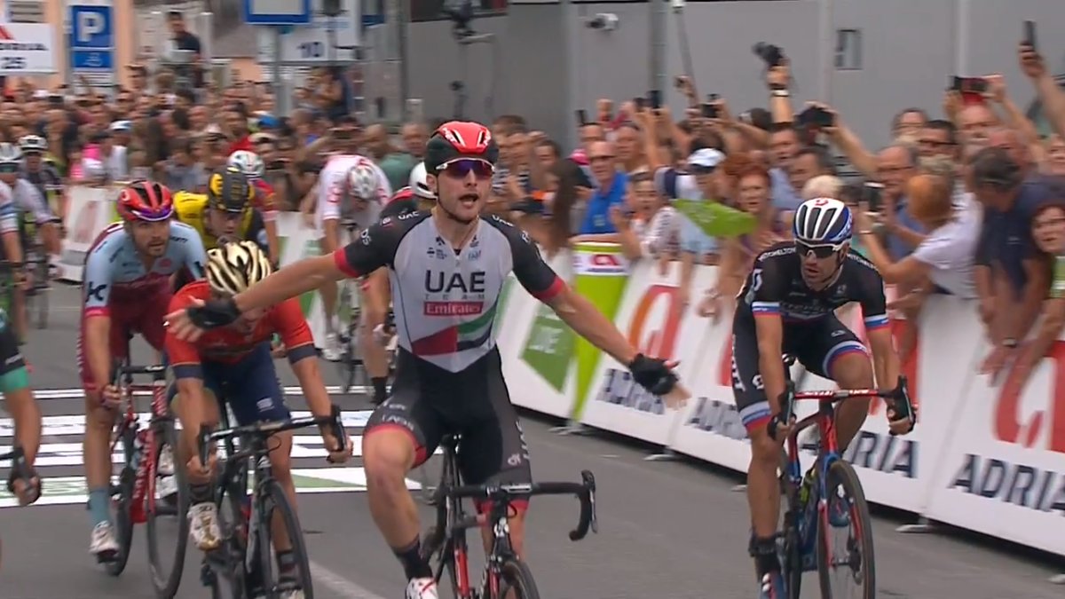 🇮🇹Simone Consonni of 🇦🇪@TeamUAEAbuDhabi wins stage 1 of 🇸🇮@TourOfSlovenia #TourofSlovenia pic.twitter.com/daAc9nHASg