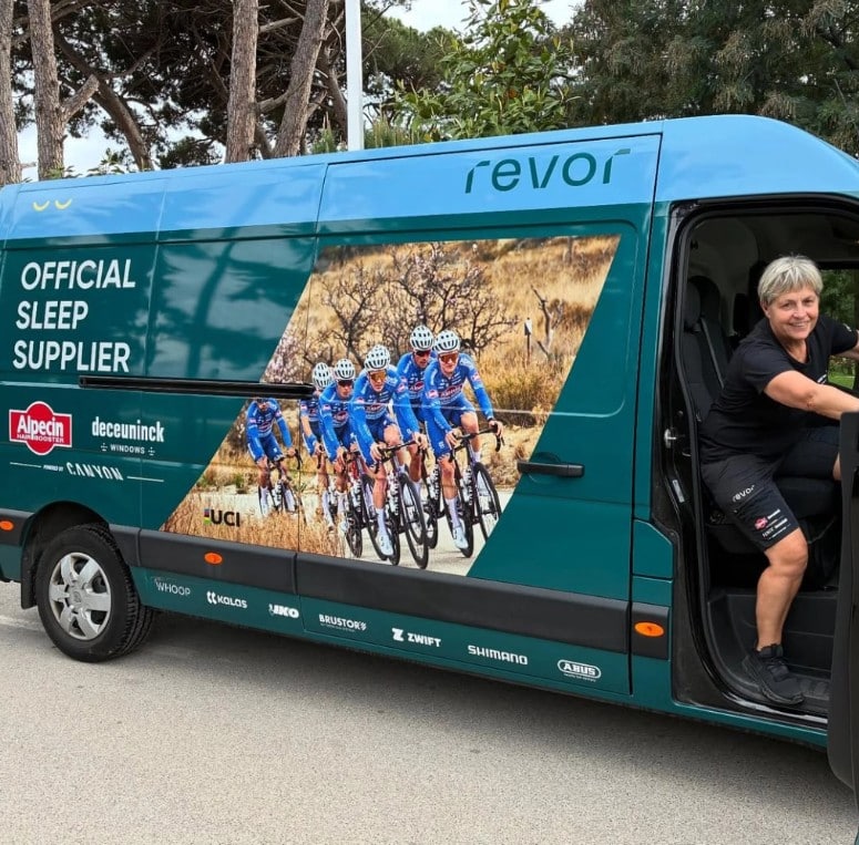 Según reportan desde Brujulabike, el equipo posee una furgoneta patrocinada por Revor dedicada a una simple tarea: trasladar los colchones y almohadas de los corredores de hotel en hotel. La razón es simple: se cree que los ciclistas (y las personas en general) duermen mejor al acostumbrarse a estar en el mismo colchón y almohada.