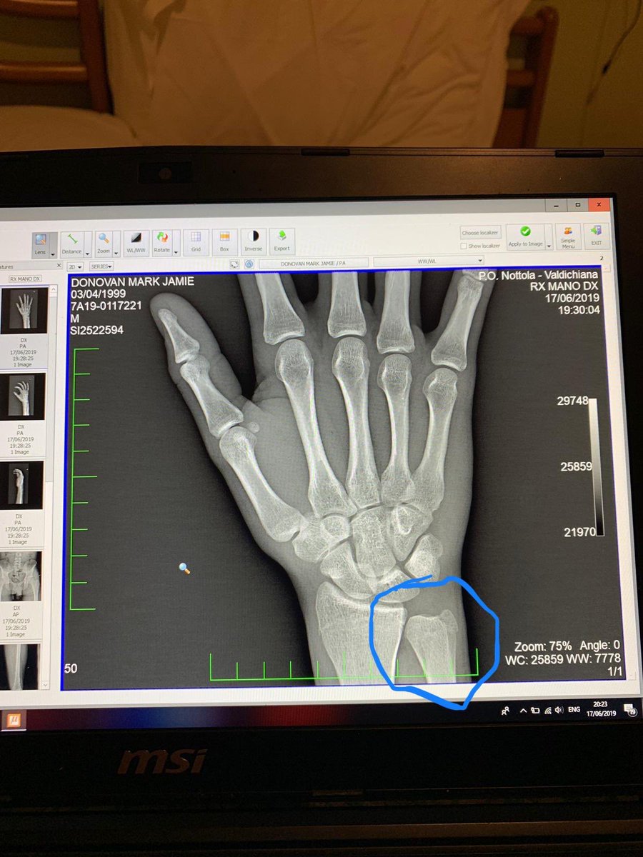 “Bueno, mi Giro está terminado. Muñeca rota y un hematoma en la pierna izquierda. No puedo tomar un descanso esta temporada después de tener neumonía en abril”, expresó Donovan, quien espera volver para el final de la temporada.