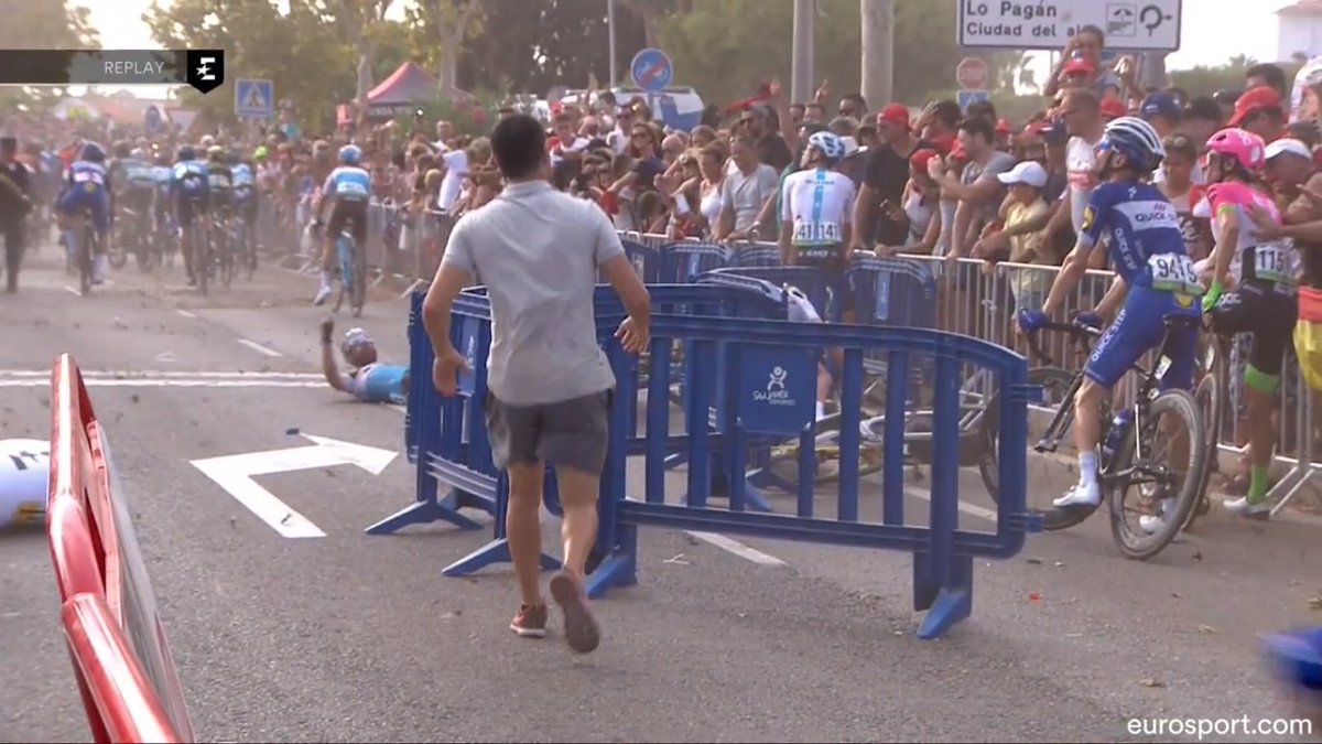 Intentad evitad esto la próxima vez!! El helicoptero volaba muy bajo #lavuelta18 @lavuelta @AG2RLMCyclisme pic.twitter.com/gxS7MuujNa