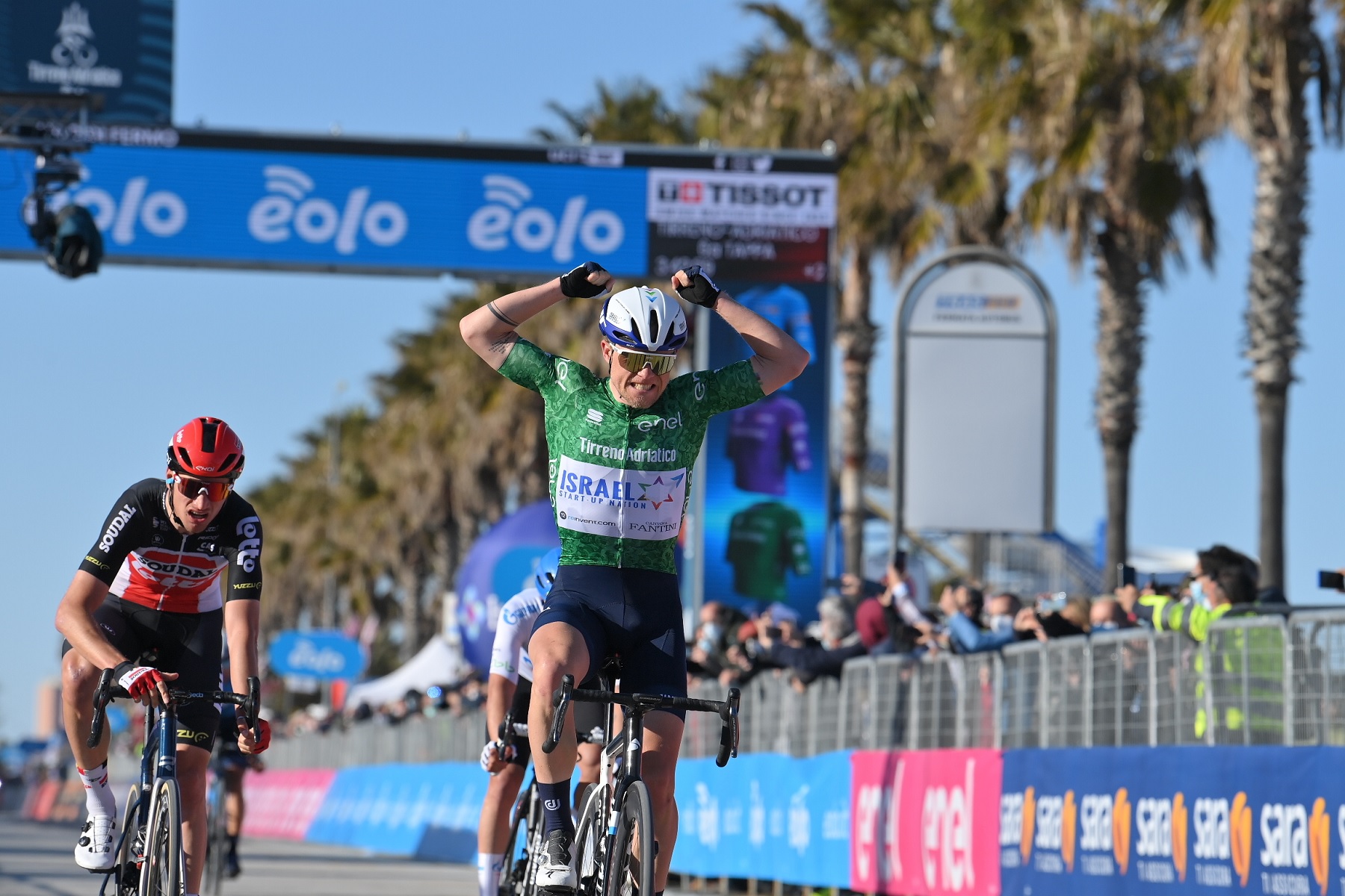 Mads Wurtz Schmidt, del Israel Start Up-Nation, se adjudicó el sexto parcial de la Tirreno Adriático 2021, dibujado sobre 169 kilómetros, desde Castelraimondo hacía Lido di Fermo. El danés coronó al sprint una larga fuga gracias a la poca convicción del paquete principal para atrapar a los escapados.