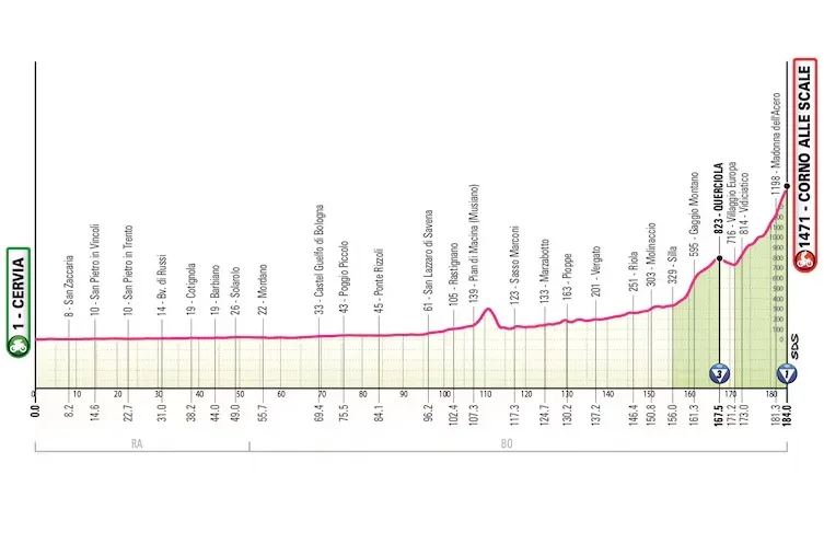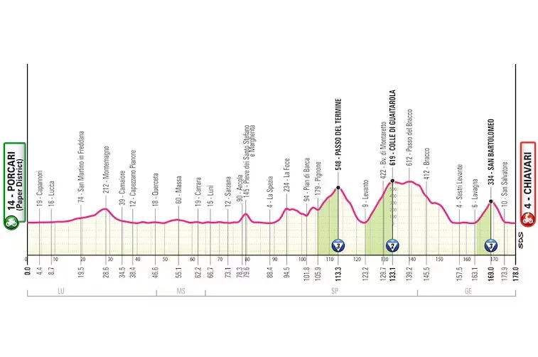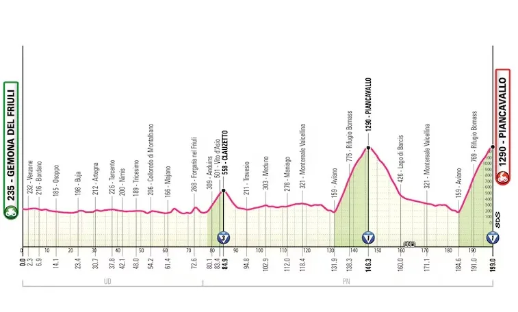 En principio, un día para escapados y atacantes tardíos con buen golpe de riñón. Mucho dependerá de quiénes corran finalmente el Giro para ver si los gallos hacen algo en el final en alto.