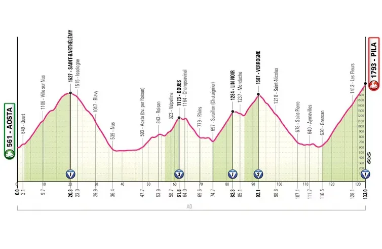 Espectacular encadenado con un puerto de bajada de bandera y una distancia total en el parcial de apenas 133 kilómetros. Eso suele ser indicativo de día explosivo. ¿Se animará alguien a romper desde el comienzo? Un menú ideal para ver buen ciclismo.