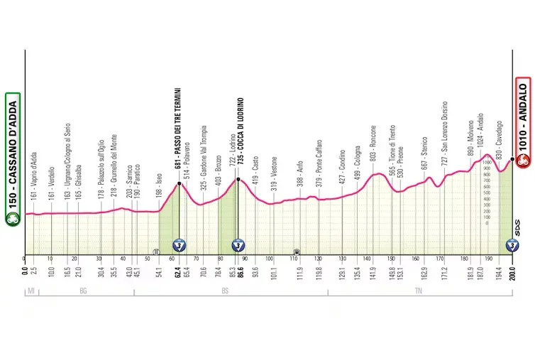 Primera llegada en alto, nada menos que en Blockhaus. Allí se mostrarán las cartas, nadie ganará el Giro pero sí puede perderlo. Un dato a considerar son los 246 kilómetros dispuestos. Si los ciclistas van a protestar, pueden hacerlo hoy, no ese día. Las rutas de la región son complejas, en constante sube y baja, con lo que añadirán desgaste.