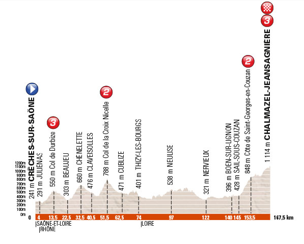 By David Hunter Creches sur Saone – Chalmazel 168km A much harder day in the saddle. It’s not a mountain top finish, so this will interest quite a lot of the peloton.