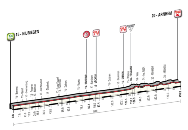 By David Hunter Nijmegen – Arnhem 190km Our last day in Holland and some riders will really hope that the wind blows. Thanks to his win today, Marcel Kittel has a chance of taking the pink jersey.