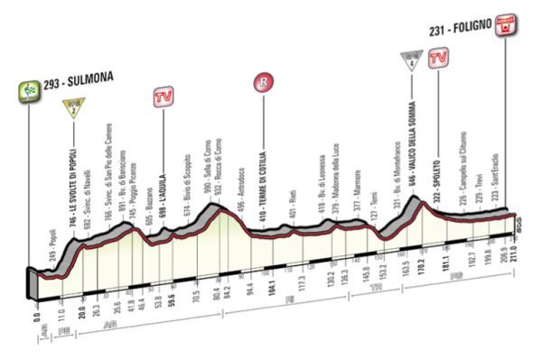 By David Hunter Sulmona – Foligno 211km Anyone tired yet? Another long stage, as the riders head up to Foligno.