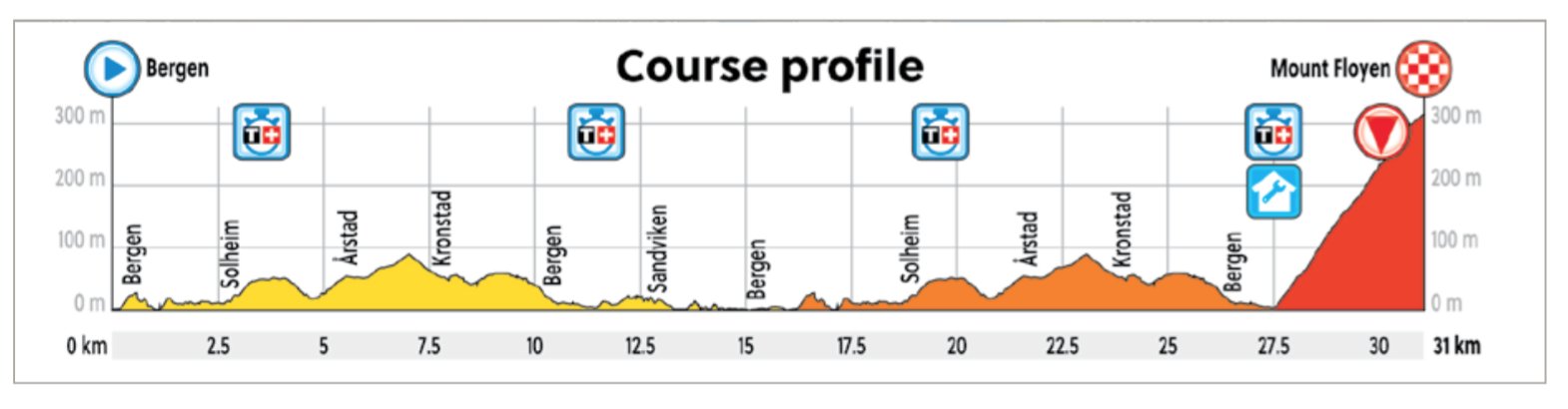 By David Hunter Bergen – Mount Floyen 31km ITT Time for another battle against the clock.