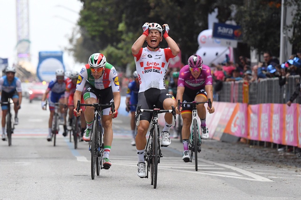 Por @FXavierVidela Caleb Ewan (Lotto Soudal) se llevó la victoria en la etapa más extensa del Giro de Italia 2019, imponiéndose de manera contundente al sprint ante los campeones nacionales, el italiano Elia Viviani (Deceuninck-Quick Step) y el germano Pascal Ackermann (Bora-hansgrohe).
