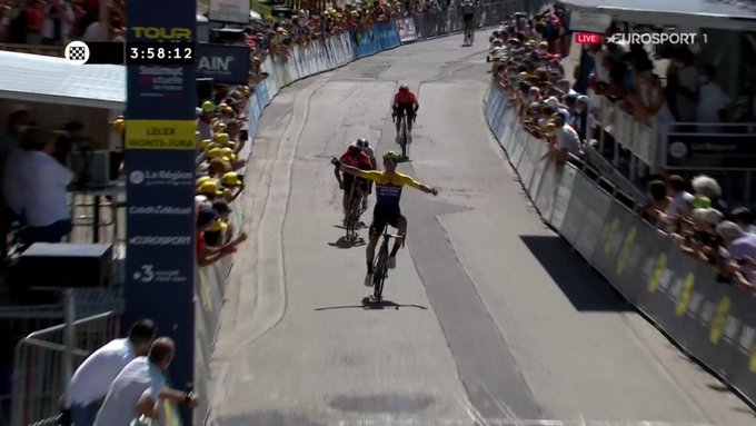Por @Nandodimaria El corredor esloveno Primoz Roglic del Jumbo-Visma demostró su mejor punta de velocidad y se impuso en el sprint del reducido grupo que disputó la etapa reina del Tour de L’Ain. La fracción se corrió entre Lagnieu y Lélex Monts-Jura, sobre 140,5 km. En una trepidante jornada del mejor ciclismo de élite, la escuadra…