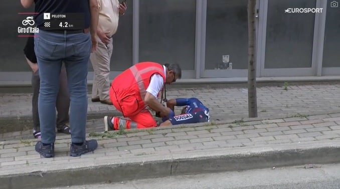 El vasco se cayó cerca de meta. Video: Landa fuera del Giro el primer día.