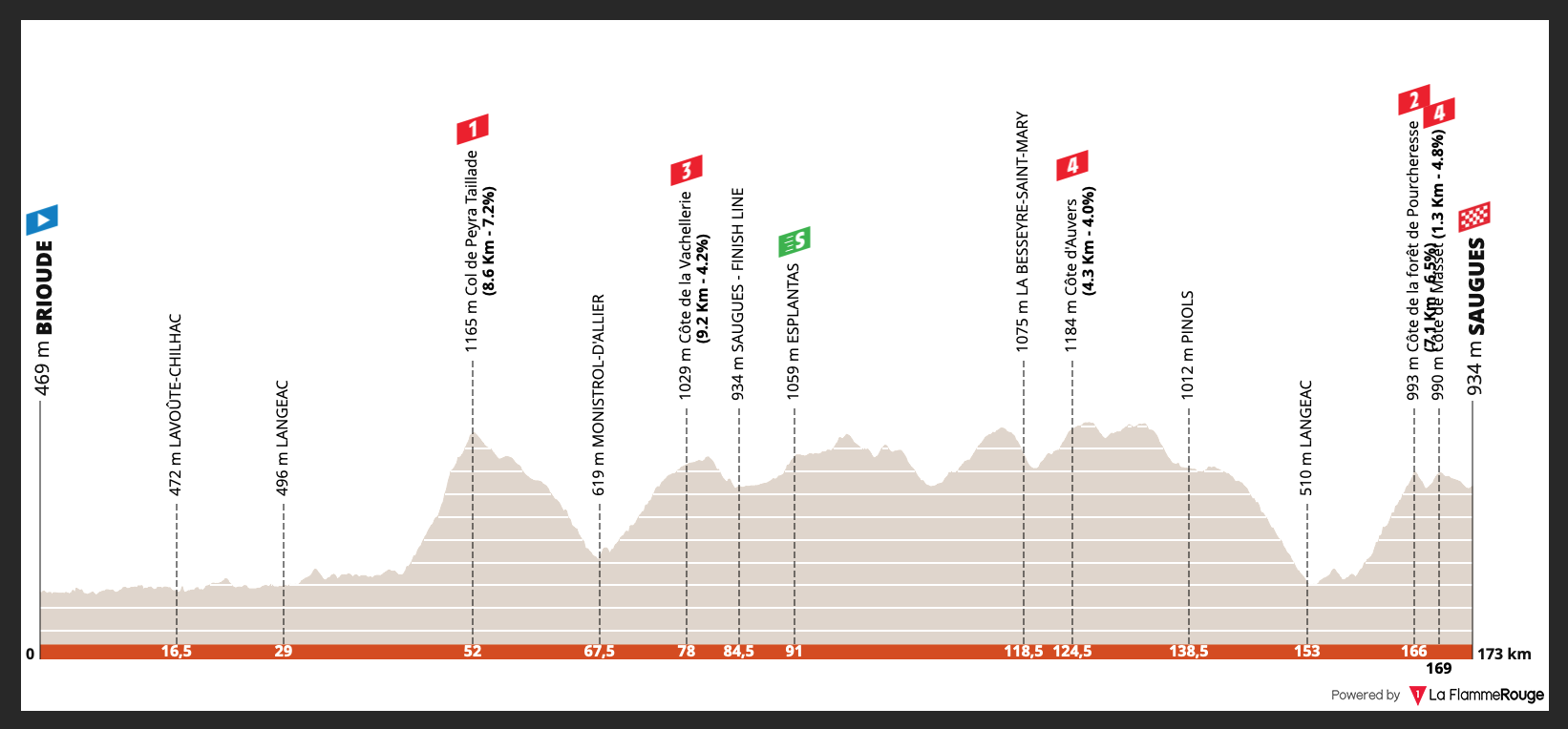 Por David Hunter Brioude > Saugues 173km Otro parcial que interesará a varios tipos de corredores.