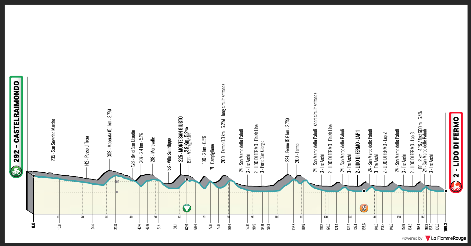 Por David Hunter Castelraimondo > Lido De Fermo 169.3km Luego de la emocionante etapa de hoy, mañana todo será más tranquilo.