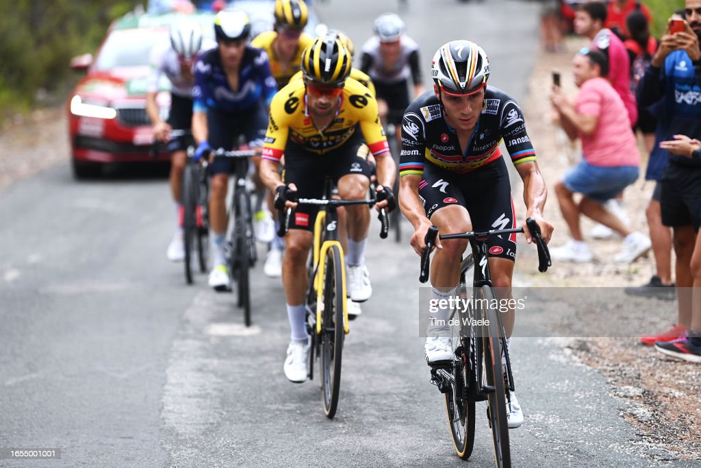 Remco Evenepoel cumplió con una decorosa defensa en un parcial que le podía ser adverso. Con su estrategia logró contener a tres corredores de Jumbo-Visma, que no tuvieron manera de acecharlo pese a haber trabajado todo el día.