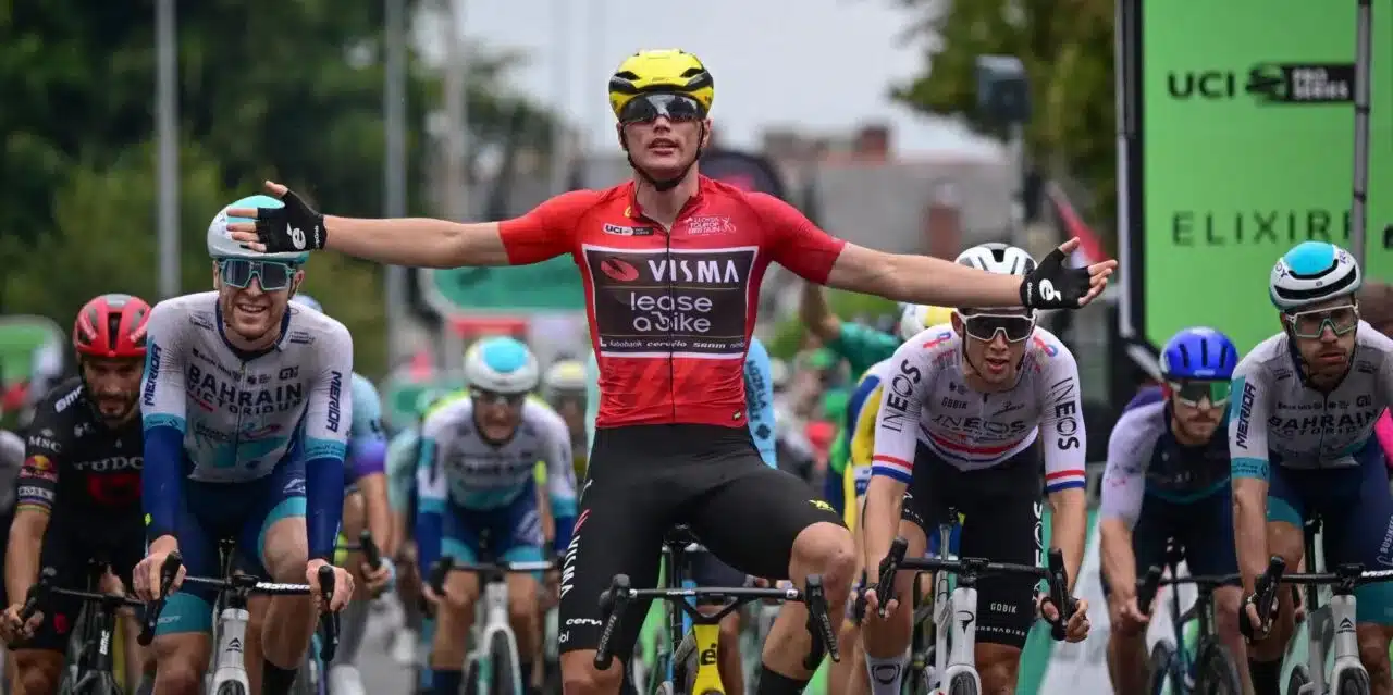 Finalmente, todo se terminó al sprint: Matthew Brennan le devolvió el favor de la tercera etapa a Olav Kooij y esta vez fue el británico el que le tocó ser el lanzador. Samuel Watson (INEOS) temrinó segundo y Wright, tercero. Ninguno de la general, al final, obtuvo segundos de bonificación. Tras su victoria en la etapa 4, Grégoire tenía una ventaja de dos segundos en la clasificación general al comenzar la etapa, pero terminó 13.º, manteniendo su ventaja y llevándose la general por tan sólo dos segundos frente a Evenepoel.