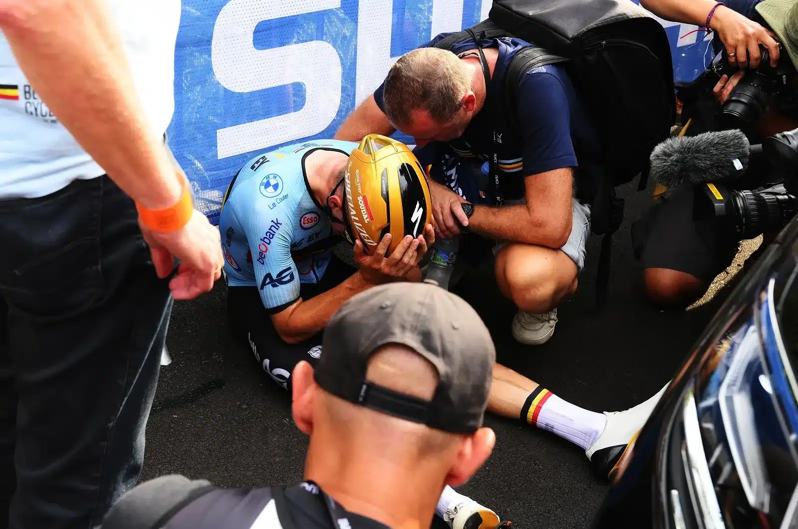 Así lo explicó Víctor Campenaerts, uno de sus gregarios, a HLN. “En el circuito hacia Mount Kigali la ruta era mala. Él se metió en un bache y su sillín se movió. Eso es un gran problema en la fase clave de un Mundial, especialmente sin comunicaciones”, narró. Pero el show de Remco seguiría, porque en la Côte de Kimihurura hizo más ademanes de enojo, indicando que debían cambiar de bicicleta otra vez. El mecánico de Bélgica, Dario Kloeck, lo contradijo. “Revisamos tres veces, no había nada malo en su bicicleta de respuesto”, lanzó.