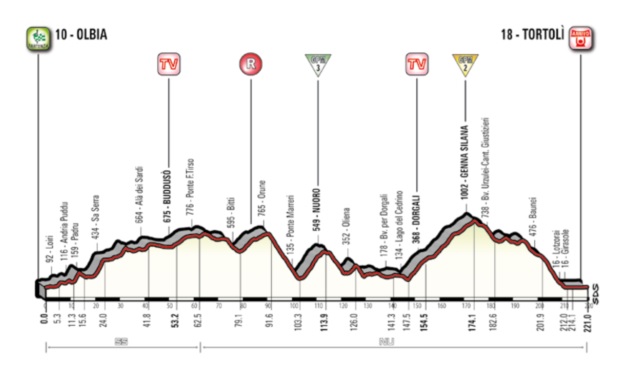 Este es un día muy complicado para los sprinters, con pocos kilómetros planos y dos puertos categorizados. El de 3° consta de 10.6 km al 3.9%, pero el punto clave será el de 2° -Genna Salana- y sus 26.6 km al 3.3%.
