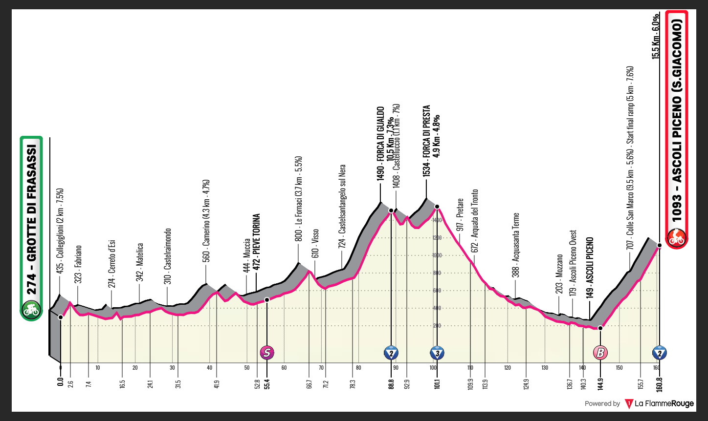 Grotte Di Frasassi > Ascoli Piceno 160.8km