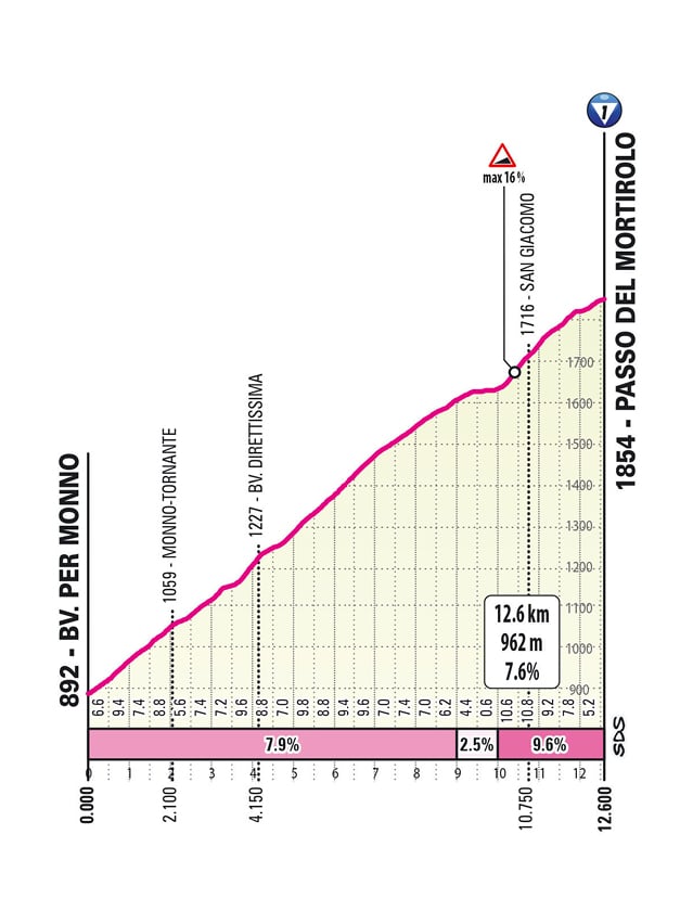 Para nuestro infortunio no se ascenderá por la clásica ruta de Mazzo di Valtellina, que fue empleada por última ocasión en 2019. El Tonale se escala en dirección contraria a Aprica, por lo que en lugar de tener la transición por Edolo, aterrizamos directamente en Monno, donde se recorrerán 12.6 km cuesta arriba camino a la cima del mítico puerto.