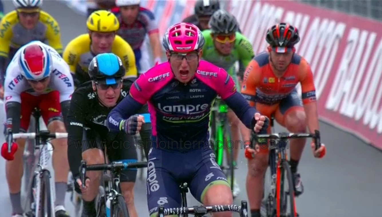 En la lucha por el parcial, el tren de Lampre se ponía al frente a 1000 metros del final con Roberto Ferrari tomando el control y dejando bien posicionado al argentino Maxi Richeze, quien lanzó a la perfección a su líder Sacha Modolo, logrando de la mano del velocista italiano la 3° victoria en la actual edición para la escuadra fucsia, tal como habíamos anticipado en la previa.