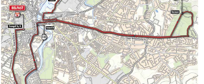 We have a short climb up to Stormont and we finish with an uphill drag. It is due to rain most of the day in Belfast but thankfully it is predicted to stop before Team Colombia set off at 1750. Their might still be an issue with wet roads as they might not have fully dried out before this point. The wind is coming from the West, so a head wind on the long road back from Stormont. This wind is to slightly die down as the evening goes on. Both the roads and the wind look like being in favour of the later starters. Here is the starting times of the big TTT teams:-