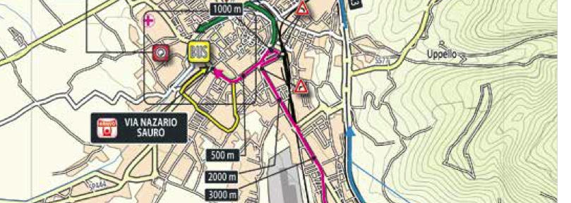 The stage starts climbing form kilometre zero, with a very long cat 3 climb . The key point of the stage happens from 154km to 171km, with 2 climbs. The first is uncategorised, with 6.1km at 3.7%, then a very short downhill before the cat 4 climb of Valico Della Somma, 6.7km at 4.9%. The riders crest this climb with 40km remaining, so there is time for dropped riders to return to the peloton.