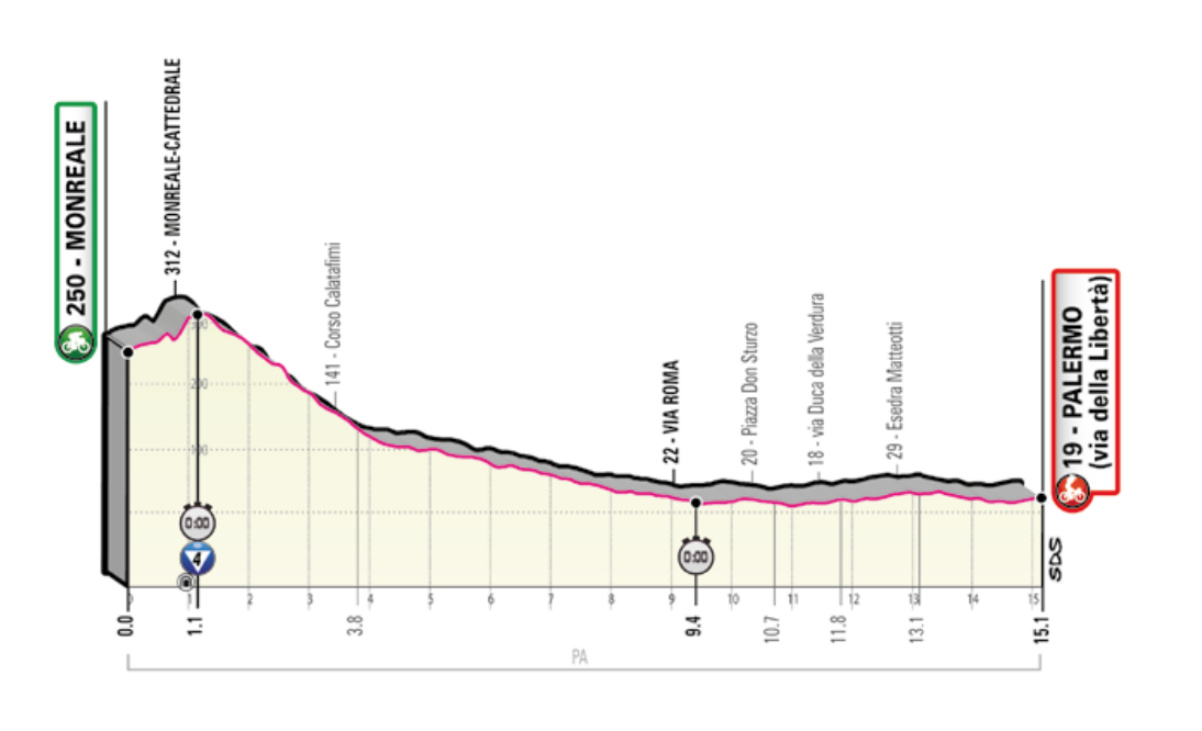 Este recorrido tiene un poco de todo. Empieza con una breve trepada que incluye algún sector adoquinado, luego hay un descenso de unos 4 km y, en el kilómetro 5 empieza a nivelarse, aunque los siguientes 4 km todavía son en tendencia a la baja. Los 6 km conclusivos son planos. Es una contrarreloj muy veloz en la que casi no tocarán los frenos.