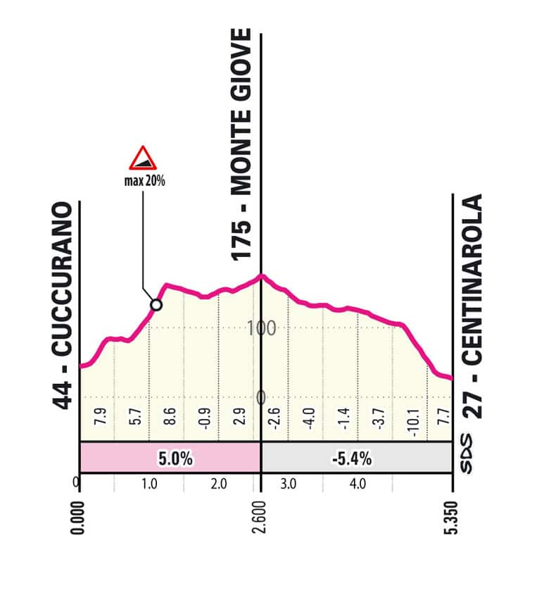 Se cree que superada la última meta volante llegará la paz, pero no es así, ya que el trazado nos ofrece un obstáculo más y que puede ser decisivo: Monte Giove.