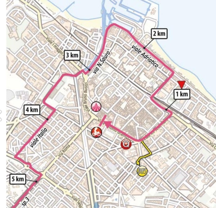 El final es técnico. Se rueda por el centro histórico de Fano atravesando 13 curvas de consideración en carreteras estrechas, factor que sería benévolo para alguien o un grupo pequeño que marche en cabeza. El último viraje es a 450 metros de sentencia en un asfalto más amplio y amigable.