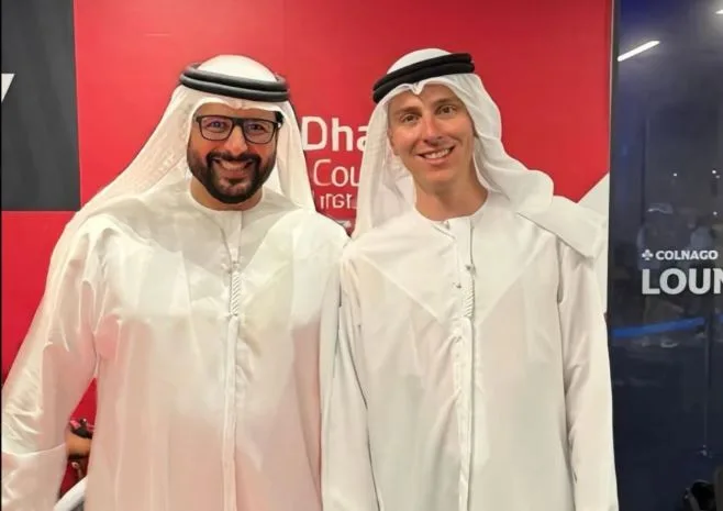 El campeón mundial, acompañado de un grupo de ciclistas locales, estuvo presente en la inauguración en Abu Dhabi. Pogacar sonríe, aunque no queda claro si realmente le gustó la figura o si se lo ve un tanto incómodo. La estatua muestra a un ciclista –que poco se parece al esloveno- realizando la pose tradicional de Pogacar que usó en varias oportunidades, incluyendo la etapa 6 del Tour de France 2023 cuando le ganó a Jonas Vingegaard. Mauro Gianetti estuvo presente en el evento, así como varios representantes de Emiratos Árabes, con quienes Pogacar posó en algunas fotos vistiendo la típica thawb.