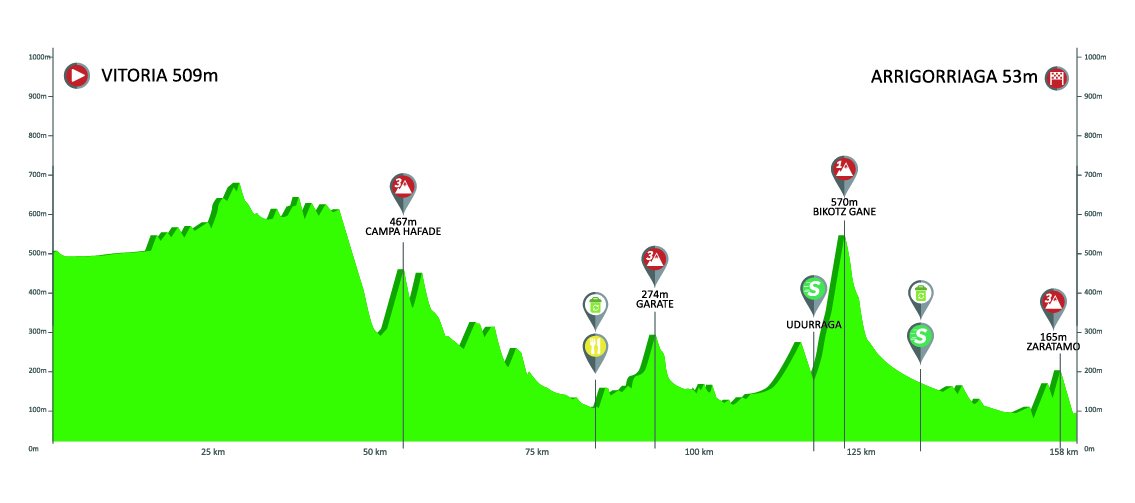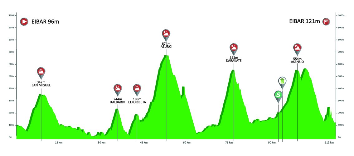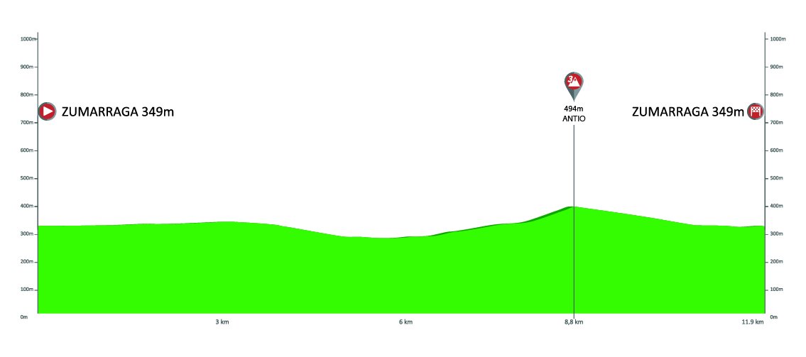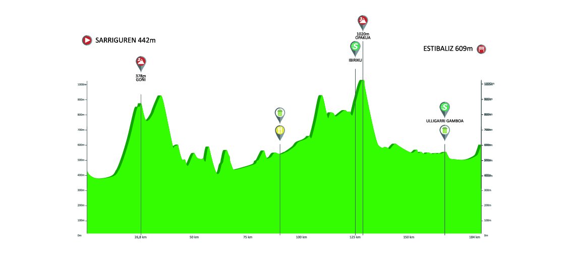 A continuación, dos parciales para velocistas camino de Gorraiz y Estibaliz, aunque acabando en repecho y, otra novedad, con tramos de tierra rumbo a Gorraiz; y etapa quebrada con Bikoitz Gane y Zaratamo.
