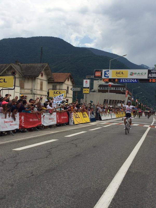 Peter Kennaugh (Team Sky) ganó la etapa 1 del Critérium du Dauphiné, 132 kilómetros entre Ugine y Albertville en los que burló la vigilancia del pelotón y se alzó con una excelente y agónica victoria en solitario. Kennaugh es el primer líder del evento.