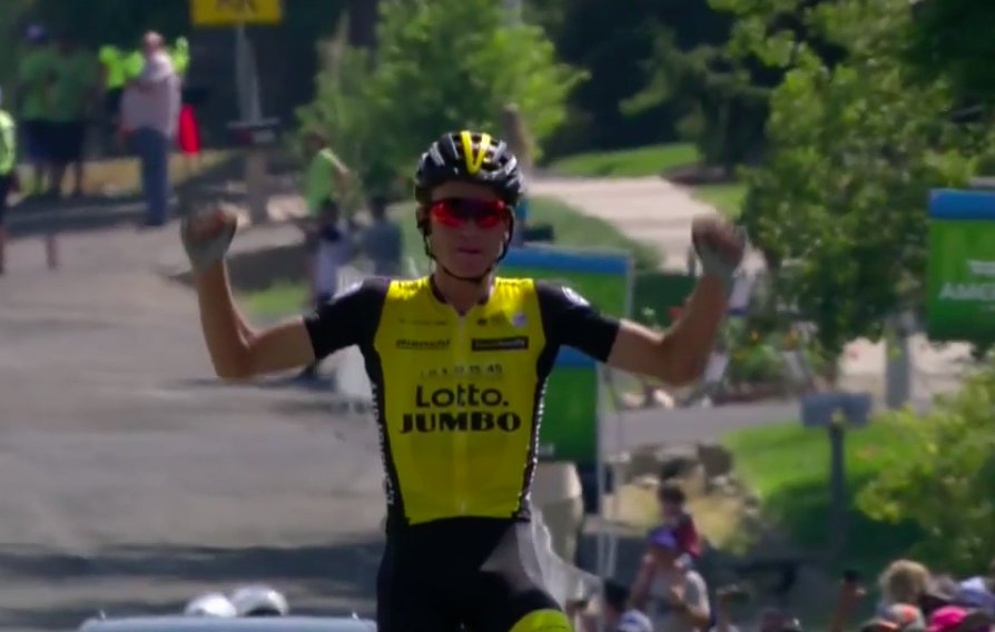 No sólo se quedó con la victoria, sino que su compañero Neilson Powless firmó el 1-2 tras ingresar a meta 29 segundos después. Así, la dupla de LottoNL partirá al mando de la general mañana, cuando la etapa 3 una los 186.7 kilómetros entre Antelope Island y Layton City.