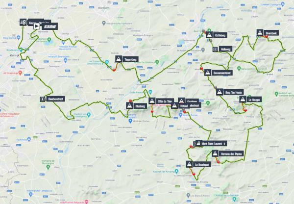195 make for a slightly shorter race, however one that doesn’t feature much of a flat start. From the 30 kilometer mark riders will start to go up and down and will ride by two of the main towns in Flandres, Oudenaarde and Ronse (not Bruxelles, as the race name would indicate, funnily).