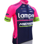 Los patrocinadores que aparecen en el maillot son Lampre, Merida; Champion System; Samsung; Lamital; Lamfer; Sidi; Kabuto y el logo del UCI World Tour.