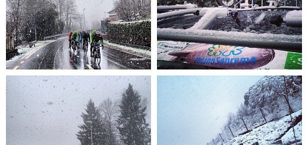 La particular edición del Monumento italiano debió ser acortada y temporalmente suspendida debido a una de las tantas tormentas de nieve del invierno, que previamente dejó al público con las ganas en la Kurne Bruselas Kurne en febrero y en la Nokere Koerse después.