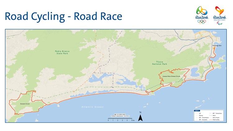 La Unión Ciclista Internacional (UCI) y el Comité Organizador de Río 2016 confirmaron recorrido y fecha de las pruebas en línea y contrarreloj de los Juegos Olímpicos de Río 2016, con el plato principal en la carrera masculina el 6 de agosto.