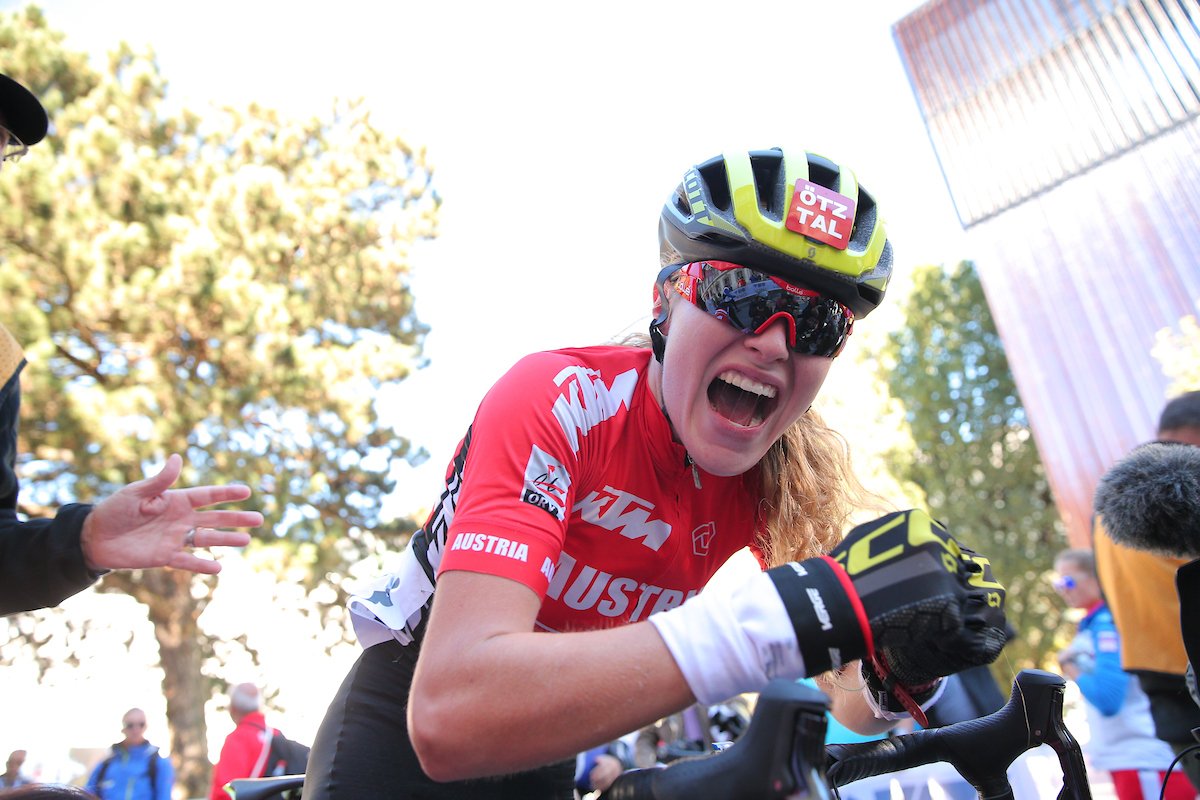 La austriaca y nativa de Innsbruck, Laura Stigger, logró coronarse campeona mundial de ruta Junior y colgarse -en casa- su segunda medalla de oro. El pasado 6 de septiembre, en la ciudad suiza de Lenzerheide, había ganado el campeonato mundial MTB Junior categoría olímpica.