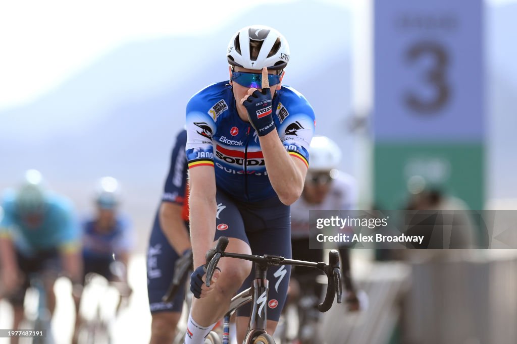 Finalmente le llegó el turno al Soudal – QuickStep. Tim Merlier se alza con la victoria en la tercera etapa del AlUla Tour. El ciclista belga de sacó sus credenciales y derrotó a Arvid de Kleijn y Casper van Uden en un emocionante sprint final tras un día de abanicos.